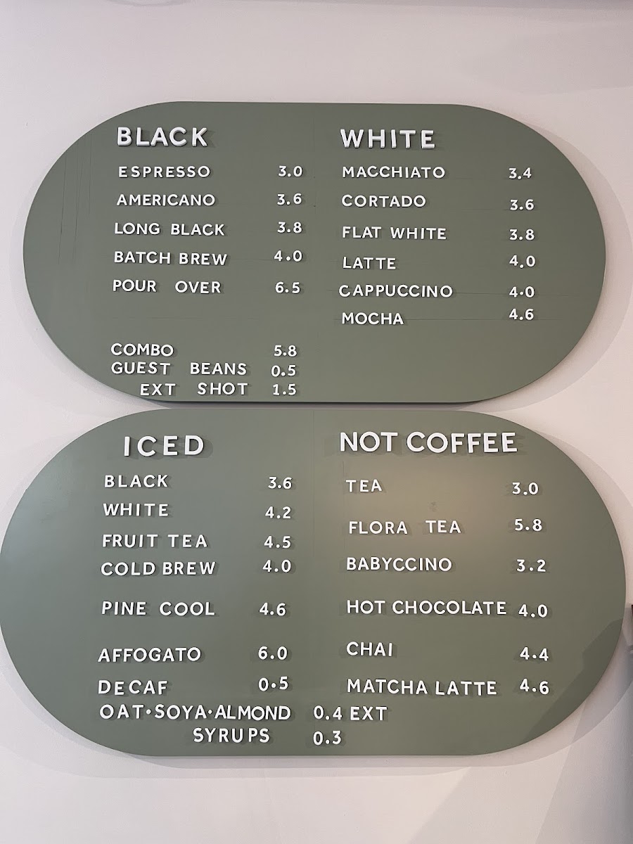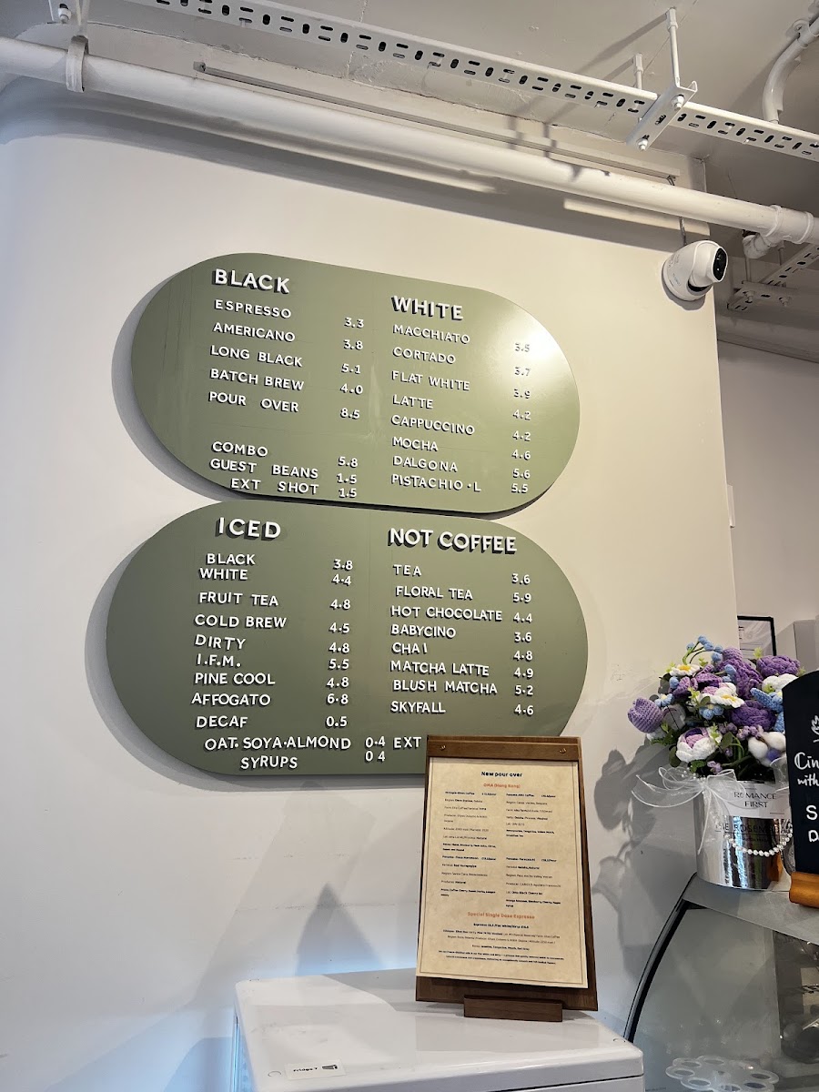 The menu at J&H Coffee features a variety of coffee drinks, gelato, and light food options, suitable for breakfast, coffee breaks, or casual dining. The coffee selection is diverse, including espresso-based drinks such as Espresso, Americano, Long Black, as well as Batch Brew and Pour Over methods, catering to different preferences and brewing styles.